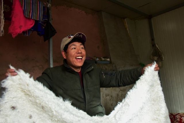 松多村鑲嵌在縣城城郊一條干涸的河谷上。這里干旱少雨,風(fēng)吹黃土漫天,只能種些青稞、土豆為生?!澳菚r(shí)我們家8口人,住的是土坯房,吃的是洋芋,人均耕地面積不足2畝,一年種的莊稼連來(lái)年買(mǎi)肥料的錢(qián)都不夠。”小學(xué)還沒(méi)畢業(yè),旦增加就輟學(xué)在家,重復(fù)著父輩的生活,不到20歲就結(jié)婚生子,同樣靠種地維持生計(jì),日子卻越發(fā)捉襟見(jiàn)肘。