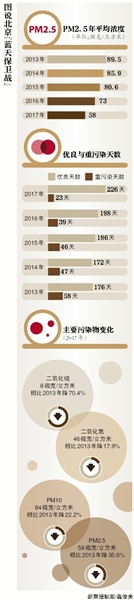 2013年9月,《北京2013-2017清潔空氣行動計(jì)劃》發(fā)布,北京正式向PM2.5宣戰(zhàn)。該計(jì)劃提出,到2017年,北京PM2.5年均濃度比2012年下降25%以上,措施力度空前。