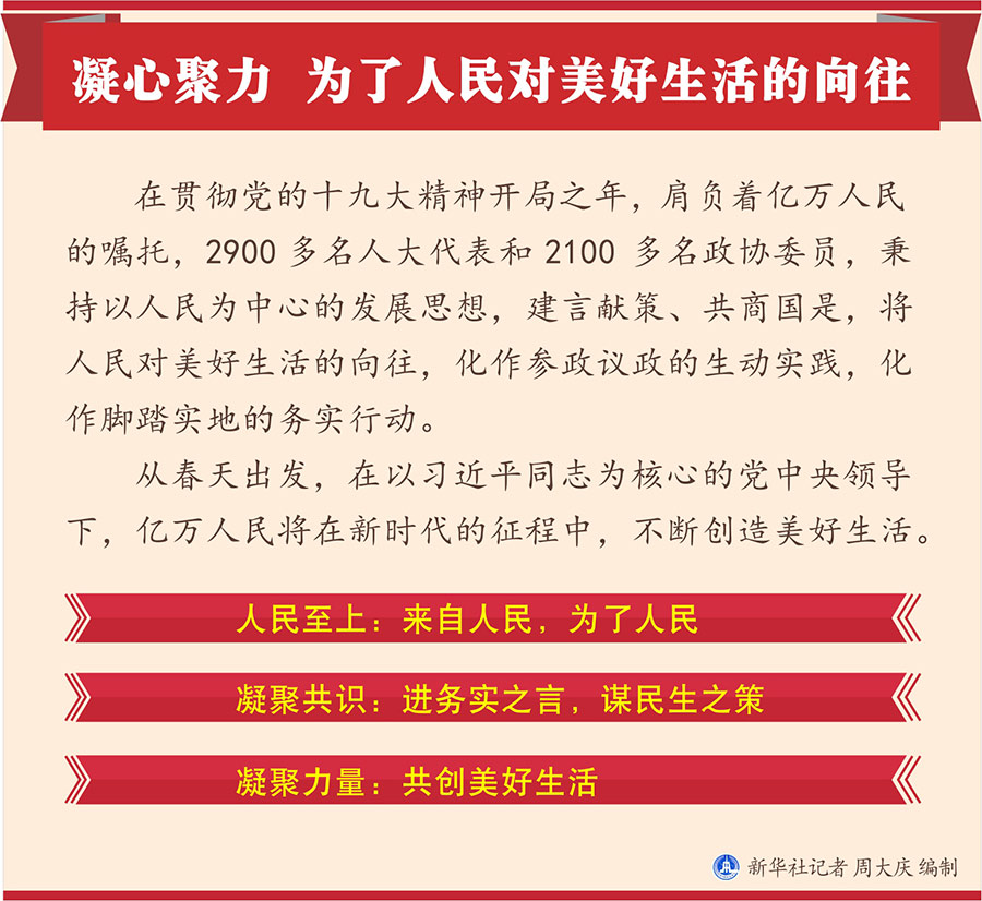 在貫徹黨的十九大精神開(kāi)局之年,肩負(fù)著億萬(wàn)人民的囑托,2900多名人大代表和2100多名政協(xié)委員,秉持以人民為中心的發(fā)展思想,建言獻(xiàn)策、共商國(guó)是,將人民對(duì)美好生活的向往,化作參政議政的生動(dòng)實(shí)踐,化作腳踏實(shí)地的務(wù)實(shí)行動(dòng)。