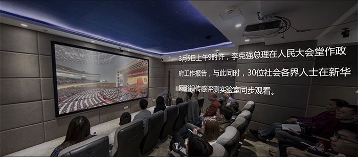 與此同時,30位社會各界人士在新華網影視傳感評測實驗室同步觀看
