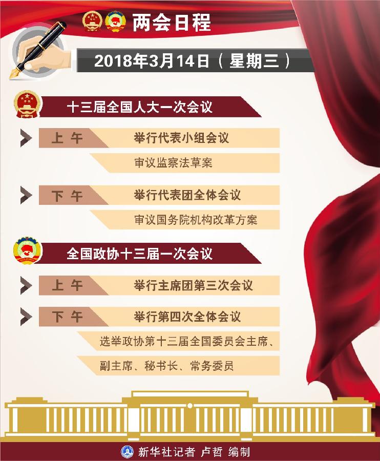 圖表:3月14日兩會日程 新華社記者 盧哲 編制