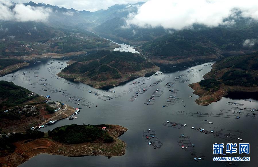 這是無人機拍攝的天生橋庫區紅水河水上“田園”景觀(3月28日攝)。春耕春種時節,在廣西隆林各族自治縣天生橋庫區,當地農民發展的水上養魚場景與紅水河兩岸景色交相融合,構成一幅幅美麗的春日畫卷。新華社記者張愛林攝