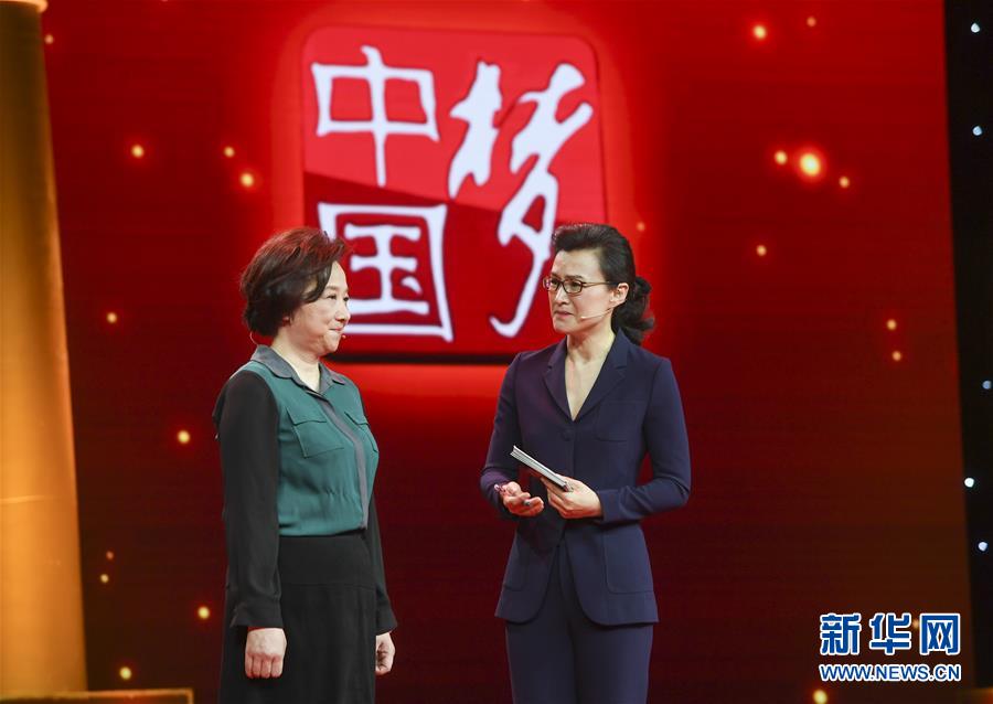 鐘揚(yáng)的妻子張曉艷(左)在“時(shí)代楷模”發(fā)布儀式現(xiàn)場(3月26日攝)。新華社發(fā)