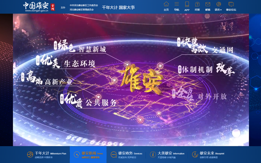 這是新華網(wǎng)承建的中國(guó)雄安官網(wǎng)首頁截圖