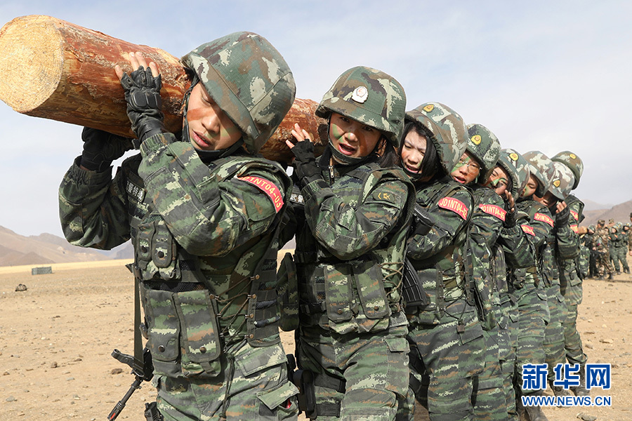 這是特戰隊員扛圓木進行極限體能訓練。新華網發 余文彬 攝
