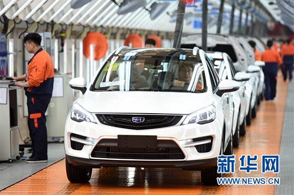 3月27日,工人們在浙江臨海的吉利汽車生產車間工作。新華社記者 殷博古 攝