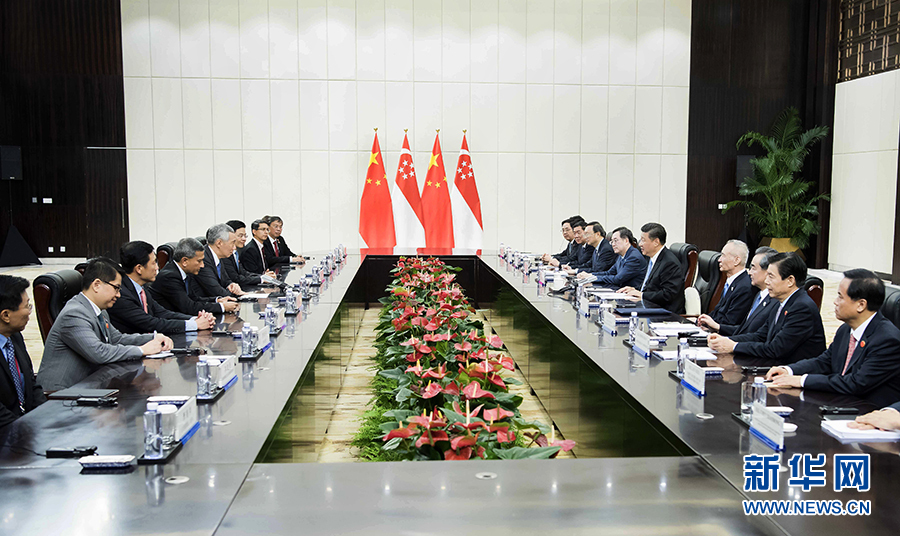 習近平指出,中新關系發(fā)展同中國改革開放息息相關。當前,中國特色社會主義進入新時代,新加坡正在實施“未來經(jīng)濟發(fā)展戰(zhàn)略”。雙方要結合新形勢新特點,對雙邊關系和務實合作作出新的戰(zhàn)略謀劃和頂層設計。雙方要推進政府間大項目合作。要加強“一帶一路”框架內合作,繼續(xù)打造好兩國共建的“南向通道”,將“一帶”和“一路”更好連接起來。中方愿同包括新方在內東盟國家加強溝通協(xié)調,實現(xiàn)“一帶一路”倡議同東盟發(fā)展規(guī)劃更好對接,構建更為緊密的中國-東盟命運共同體,希望新加坡發(fā)揮積極建設性作用。