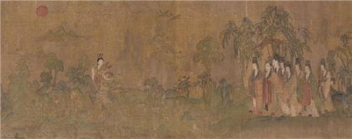 《洛神賦圖》取材于曹植的《洛神賦》,是東晉顧愷之的畫作。它將“曹植與洛水之神相會、相知、相愛,卻因人神之戀無望而依依惜別”的凄美愛情故事表達(dá)得淋漓盡致。這幅畫的原作遺失,現(xiàn)存于世的是宋代的四件摹本,分別藏于北京故宮博物院、遼寧省博物館和美國弗利爾美術(shù)館。