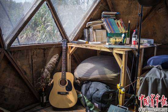 早在2011年,面對城市的高房價(jià)和霧霾,22歲的唐冠華就開始思考一種主流之外的生活方式。很快,從事廣告設(shè)計(jì)和理財(cái)分析工作的唐冠華和邢振先后離職,在青島嶗山的山林中建立了“自給自足實(shí)驗(yàn)室”,盡量不使用與不可持續(xù)能源相關(guān)的工具,獨(dú)立生活了5年。