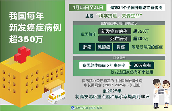 圖表:我國(guó)每年新發(fā)癌癥病例超350萬(wàn) 新華社記者 曲振東 編制