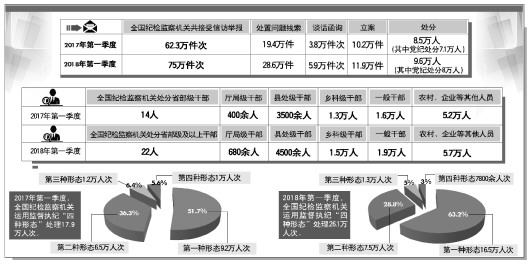 4月18日,中央紀委國家監委通報稱,2018年第一季度,處分省部級及以上干部22人、廳局級干部680余人、縣處級干部4500余人。