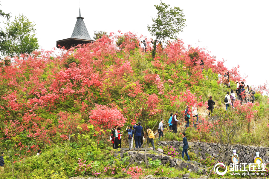 4月21日,全國森林旅游示范縣、浙中杜鵑谷——磐安縣盤峰鄉高姥山核心區塊的2000多畝各色杜鵑競相爭艷,滿山遍野杜鵑姿態萬千,花團錦簇,身臨其中,宛如置身仙境。(浙江在線拍友 陳溢之 攝)