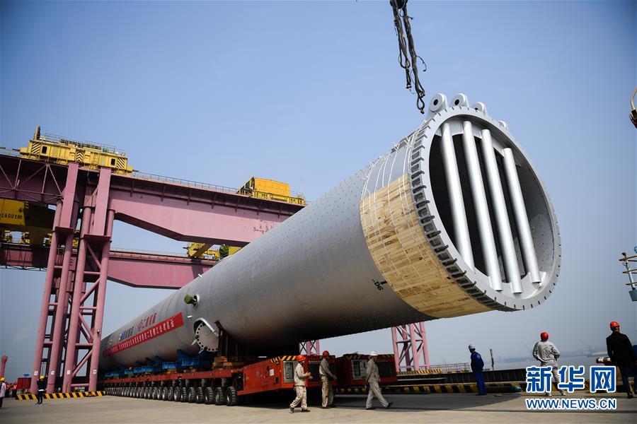 4月28日,江蘇鎮(zhèn)江,工人在給260萬噸/年沸騰床渣油鍛焊加氫反應器做發(fā)運前的準備工作。新華社記者李響 攝