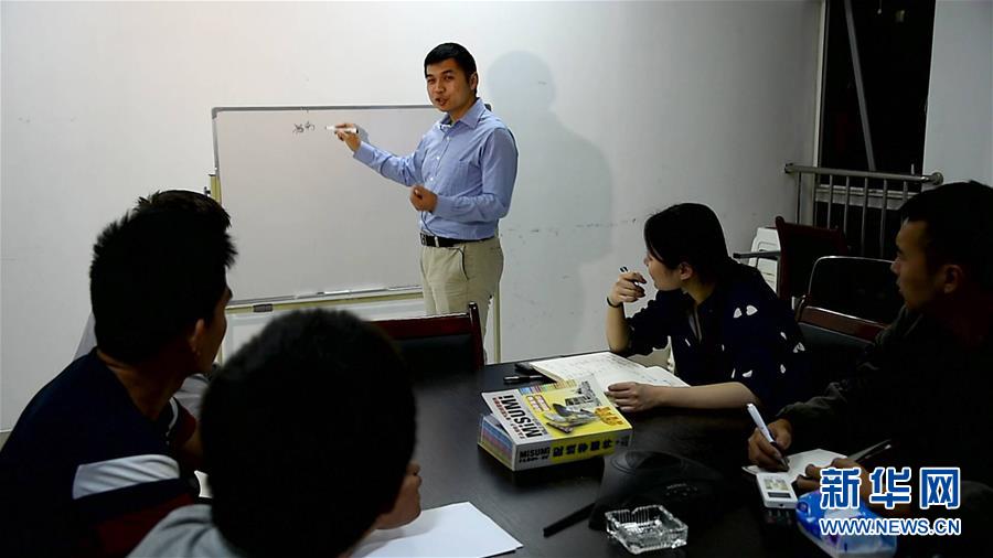 濟(jì)南翼菲自動(dòng)化科技有限公司創(chuàng)始人張賽與同事們開(kāi)會(huì)(2017年9月25日攝)。新華社發(fā)