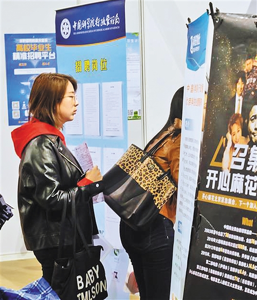 在招聘會現(xiàn)場,身著正裝的周源走走轉轉,仔細閱讀著用人單位的招聘海報。作為一名中文系碩士應屆畢業(yè)生,周源手里已經(jīng)有了好幾份錄取通知書,她仍然顯得有點焦慮。還有2個多月就要畢業(yè)了,是回老家沈陽還是留在北京,她坦言還沒有想好。回到老家離父母更近一些,在大城市里發(fā)展機會更多,究竟如何取舍,她遲遲做不出決定。
