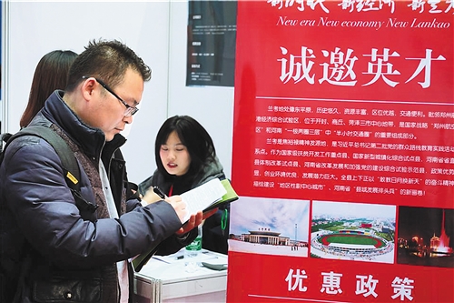 作為高校畢業(yè)生生源大省,河南省每年高校畢業(yè)生人數(shù)在50萬左右。據(jù)河南省人才交流中心副主任盧宇表示,截至2018年3月底,通過對河南省人才交流中心等23個信息采集點的數(shù)據(jù)采集統(tǒng)計情況來看,全省人才服務機構為高校畢業(yè)生提供各類就業(yè)崗位20.42萬個,進場求職的高校畢業(yè)生人數(shù)12.64萬人次,求人倍率為1.61,達成意向率40.1%,同比增加2.78%。