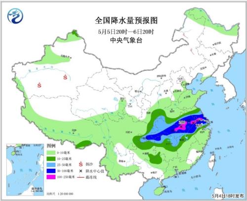 全國降水量預(yù)報(bào)圖(5月5日20時(shí)-6日20時(shí)) 圖片來源:中央氣象臺(tái)