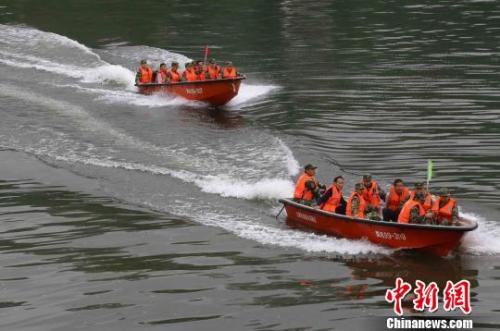 4月28日,一場實(shí)戰(zhàn)化防汛應(yīng)急救援聯(lián)演聯(lián)訓(xùn)在福建三明永安市貢川鎮(zhèn)有序展開。胡鑫 攝