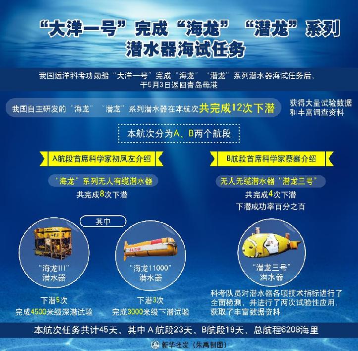 我國遠洋科考功勛船“大洋一號”完成“海龍”“潛龍”系列潛水器海試任務后,于3日返回青島母港。“海龍”“潛龍”系列潛水器在本航次共完成12次下潛,獲得大量試驗數(shù)據(jù)和豐富調(diào)查資料。>>>