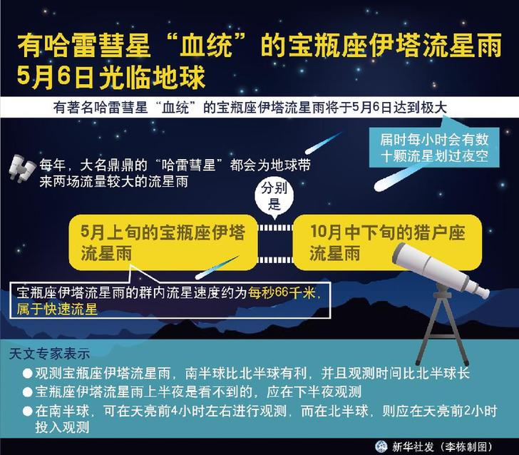 ??? 有哈雷彗星“血統(tǒng)”的寶瓶座伊塔流星雨6日光臨地球