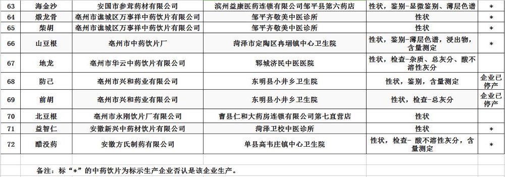 經濱州市食品藥品檢驗檢測中心等14家藥品檢驗機構檢驗,標示為河北凱諾制藥有限公司等2家企業生產的2批次藥品,標示為金芍堂中藥飲片有限公司等47家企業生產的70批次中藥飲片不合格。