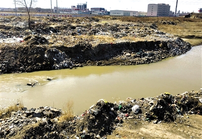 4月7日,天義鎮(zhèn)崗崗營子村,西遼河上游的老哈河從垃圾場中間流過。(新華社記者 王靖 攝)