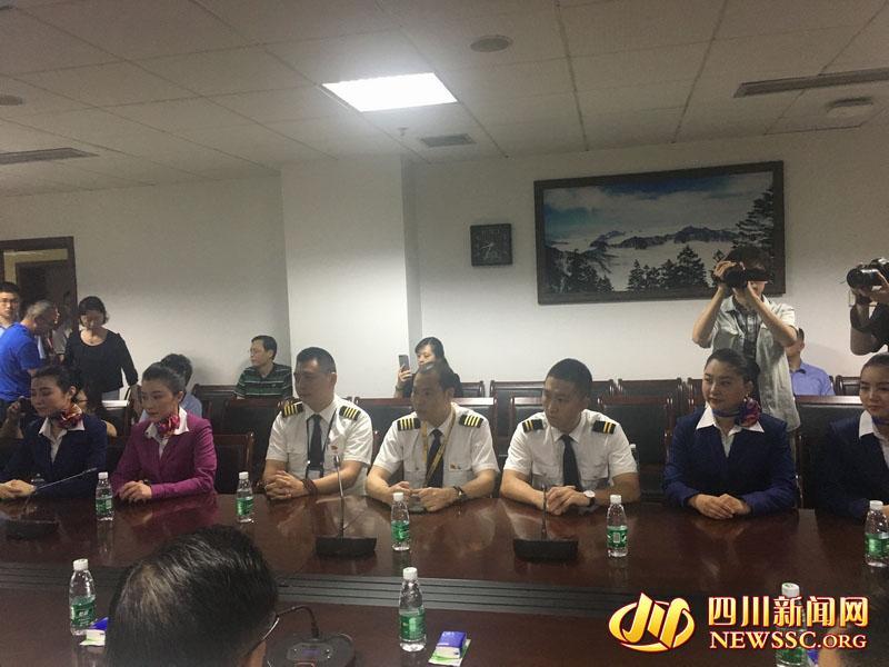 5月14晚8點30分,四川新聞網記者在成都市第一人民醫院見到了四川航空公司3U8633機組機長劉傳健及機組成員,記者發現機組成員狀態良好。在代表機組向媒體介紹相關情況時,機長劉傳健聲音洪亮,精神飽滿。劉傳健說,“感謝社會各界對機組的關心和厚愛。今天發生的這件事應該是很罕見的,但是經過機組的共同努力,做到人機安全,保障了我們所有的旅客安全,我和我的機組是非常榮幸的。”