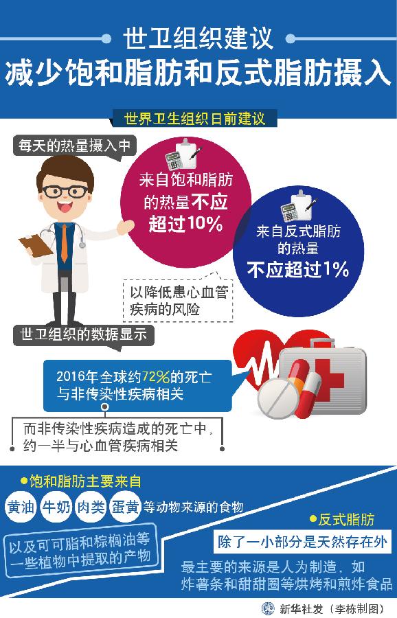 世衛(wèi)組織建議減少飽和脂肪和反式脂肪攝入