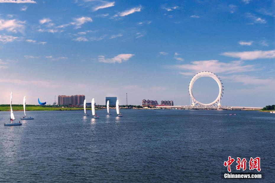 位于山東濰坊濱海區白浪河入??谔幍氖澜缱畲鬅o軸式摩天輪“渤海之眼”正式投入使用。文/王勇鋼 袁彥奎 圖/王勇鋼