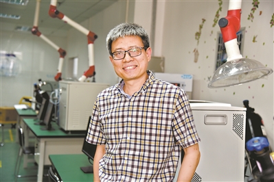 今年49歲的廣州禾信分析儀器有限公司創辦人周振習慣性輕蹙著眉頭,每說一句話都要認真琢磨片刻,遇到突發的靈感,他會馬上找到紙筆,像小學生一樣趴在那里仔細記錄下來。辦公室里最顯眼的,是周振的滿頭華發,和掛在墻上的“鍥而不舍”四個大字。
