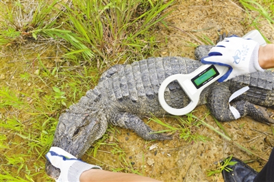 “通俗地說,電子芯片就相當于揚子鱷的身份證,我們再次捕捉到這只揚子鱷時,能迅速確定它的各種信息;無線電發射器可以給揚子鱷定位,讓我們知道它在哪。”安徽揚子鱷國家級自然保護區管理局宣傳教育科科長汪仁平說。