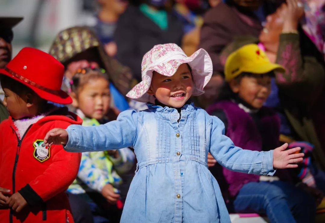 拉薩市曲水縣的一名小朋友觀看節目后,開心地笑了。新華社記者 劉東君 攝