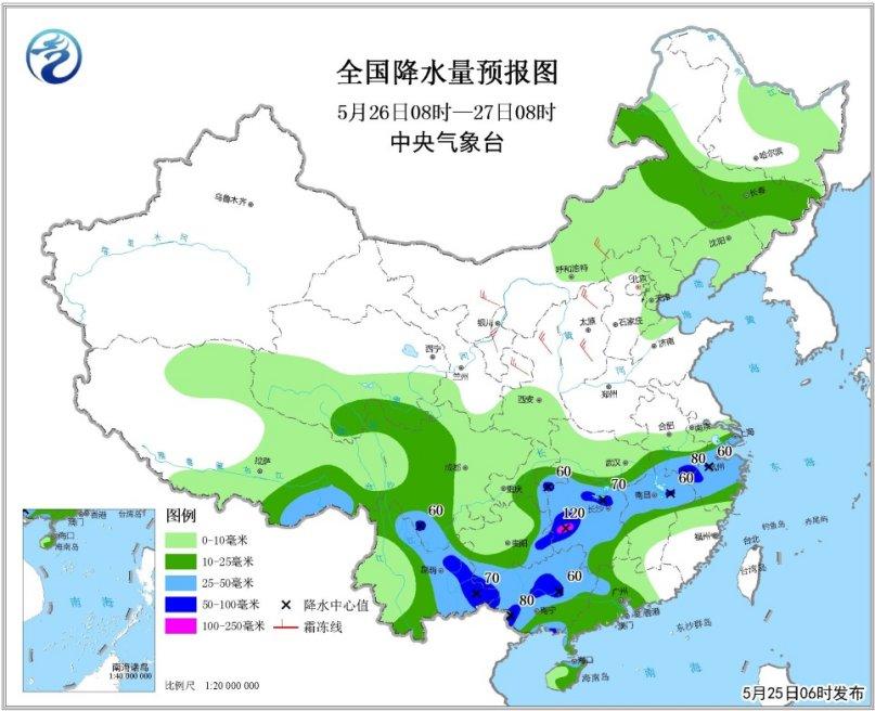 全國強降雨落區預報圖(5月25日08時-26日08時)