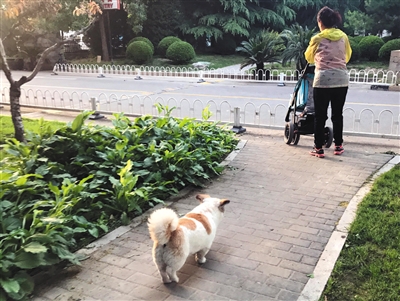 一位住在花家地的北京市民告訴記者,他所住小區內養狗市民眾多,小型犬用狗鏈的情況較多,大型犬則較少?!岸加X得小狗鬧騰,喜歡撲人,大狗安靜點兒。”他認為,對一些害怕狗的居民而言,這種不牽繩的情況仍然嚇人。