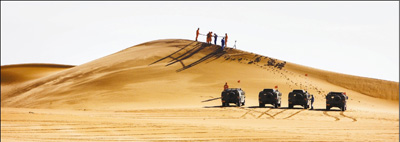 參訓(xùn)人員在巴丹吉林沙漠集結(jié)。 黃思予攝