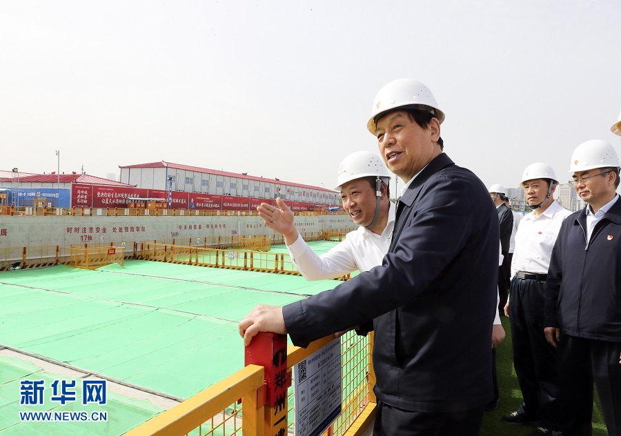 5月24日至28日,中共中央政治局常委、全國人大常委會委員長栗戰(zhàn)書在河南檢查大氣污染防治法實施情況。這是5月27日,栗戰(zhàn)書在鄭州市軌道交通4號線龍湖中環(huán)路站建設(shè)工地檢查。新華社記者丁林?jǐn)z
