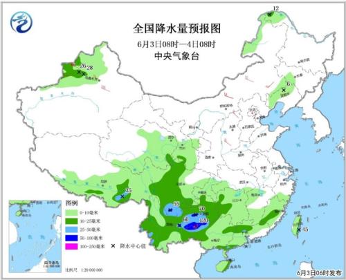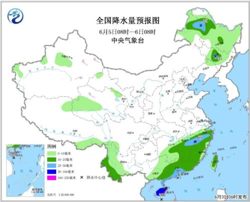 全國降水量預報圖(6月3日08時-4日08時)