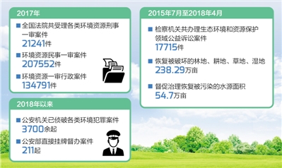 6月5日,最高法、最高檢、公安部公布了近年來打擊污染環境違法犯罪相關情況。全國法院積極受理審結各類環境資源案件,檢察機關環境公益訴訟制度不斷完善,公安機關偵破各類環境犯罪案件力度加大。一組組數字,一項項制度,一系列行動,讓我們感受到用法治護衛美麗中國的決心和力度。