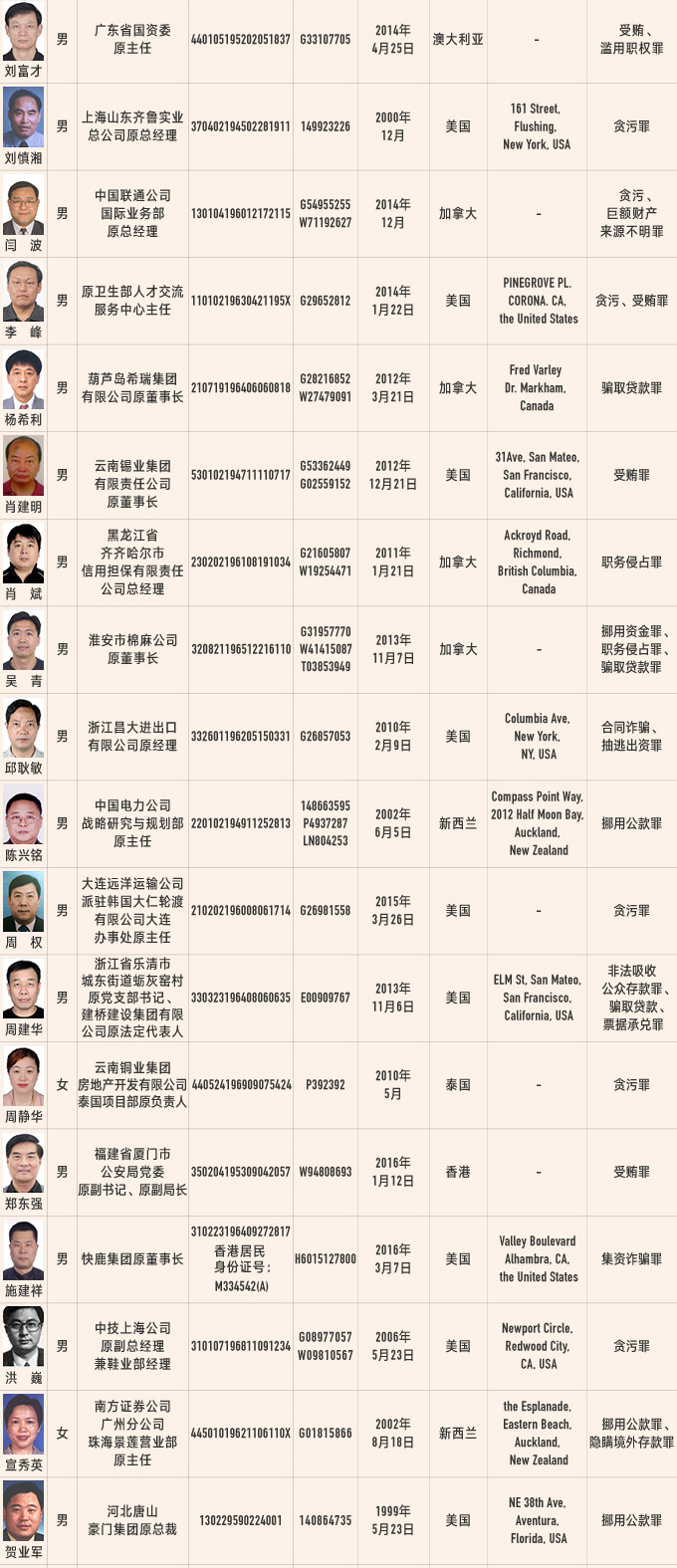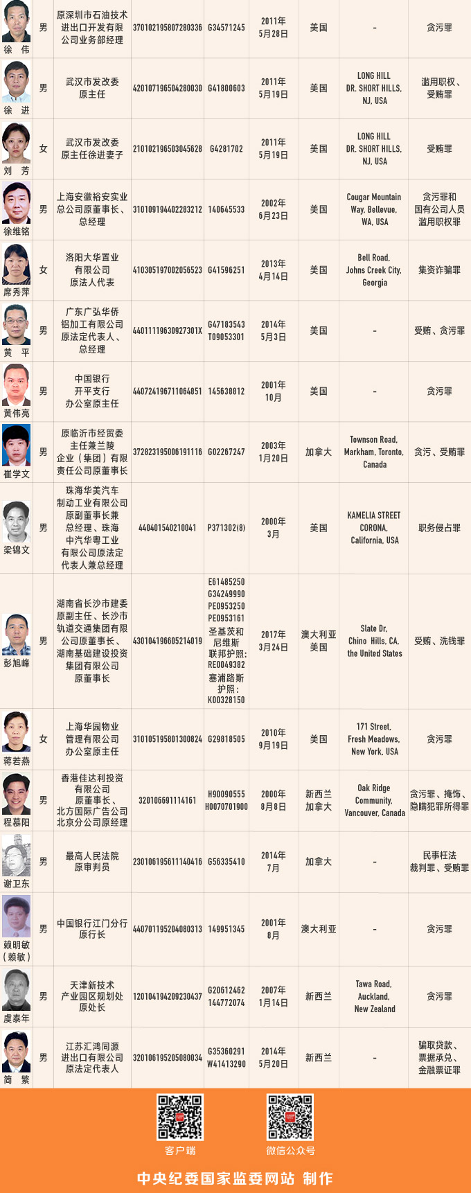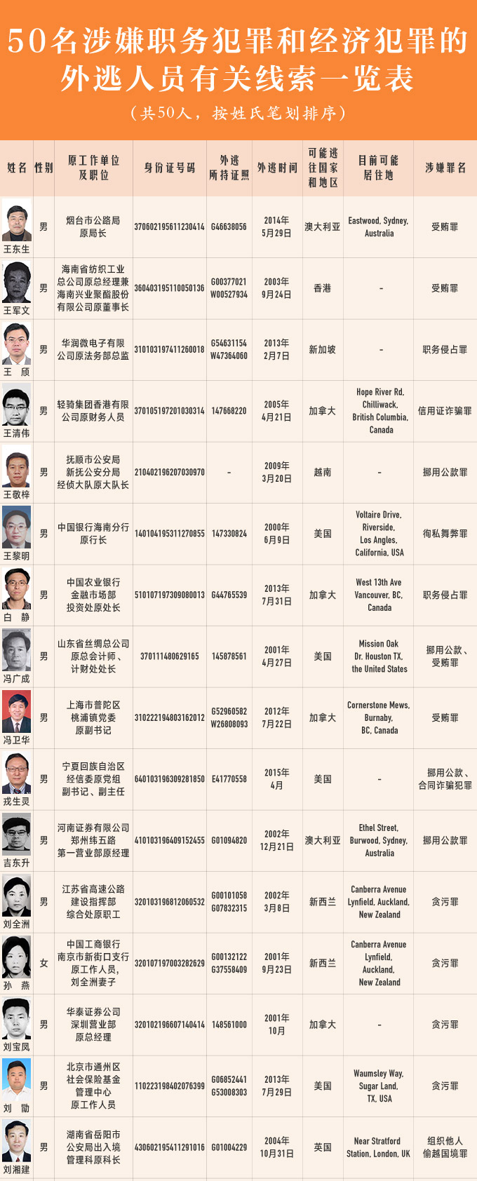 圖解:50名涉嫌職務(wù)犯罪和經(jīng)濟(jì)犯罪的外逃人員有關(guān)線索一覽表