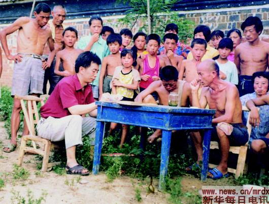 村頭上,一些人在樹下避太陽。一聽我問陳家的事,立即圍攏過來敘說。還有人趕緊跑著找來陳重申的弟弟陳重海、陳重奇。那一天奇熱難挨,除我以外的男子,幾乎全都短褲衩子光脊梁,我則長(zhǎng)褲短褂“正襟危坐”,加上一絲風(fēng)也透不進(jìn)人圈來,更使我熱得汗流不止。褂子濕了,褲子濕了,拿筆的手濕了,捏采訪本的手也濕了。然而我顧不得擦一下汗,只是一個(gè)勁“嚓嚓”地往本子上記。偶爾停筆詢問細(xì)節(jié),請(qǐng)幾個(gè)人同時(shí)證實(shí)某個(gè)事,掏出計(jì)算器計(jì)算每家的收入和負(fù)擔(dān)情況。越記心里越沉重,越算心里越難過。漸漸地,從我臉上往下淌的,有接連不斷的汗水,也有無法抑制的淚水。流進(jìn)口里的,說不清是淚水,也說不清是汗水,反正都又咸又澀。