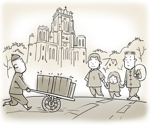 每天推著水車(chē)到河邊取水,然后挨家挨戶(hù)送水。