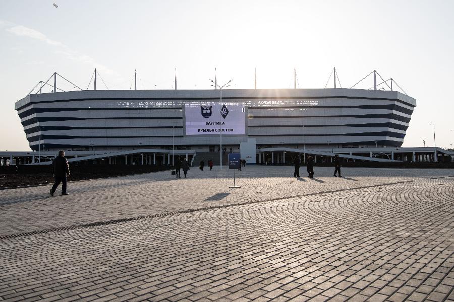 加里寧格勒體育場(chǎng)位于俄羅斯加里寧格勒市東南,是本屆世界杯新建場(chǎng)館。球場(chǎng)可容納3.5萬(wàn)名觀(guān)眾。俄羅斯世界杯期間,加里寧格勒體育場(chǎng)將舉辦四場(chǎng)小組賽。這是加里寧格勒體育場(chǎng)外景(4月11日攝)。 新華社記者吳壯攝