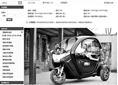 如淘寶上一家電動車銷售商家就直言標(biāo)注:“此車不能辦理牌照,也不需要駕照,請根據(jù)當(dāng)?shù)貙嶋H政策購車,不能因上牌問題退貨。”