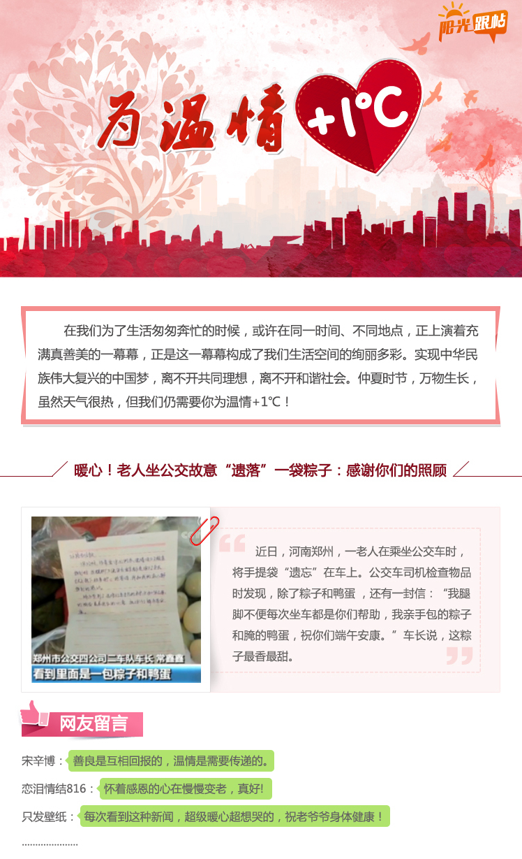 生活中這樣的溫暖時時刻刻都在上演,正是這些看似普通的舉動,匯集在一起溫暖了我們的生活,在溫暖接力中,下一個可能就是你。