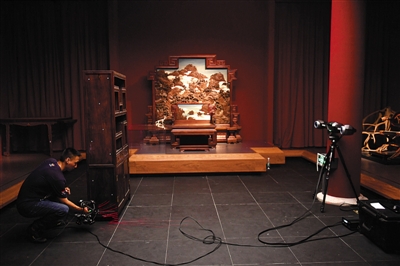 昨日,故宮南薰殿,工作人員在對(duì)展陳的明清家具進(jìn)行三維掃描。南大庫(kù)和南薰殿總共將展出約2000件明清家具。新京報(bào)記者 浦峰 攝