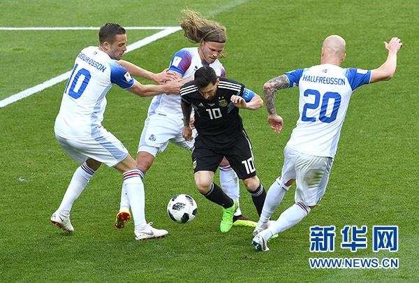 俄羅斯的世界杯之夏,昔日的“平民”球隊(duì)群雄并起,他們敢于跟傳統(tǒng)豪強(qiáng)叫板,把曾經(jīng)的世界杯冠軍得主接連挑落馬下,讓本屆世界杯成為“平民”球隊(duì)展示自己風(fēng)采的舞臺。圖為6月16日,在俄羅斯世界杯足球賽D組阿根廷隊(duì)對陣冰島隊(duì)的比賽中,阿根廷隊(duì)球員梅西(右二)受到冰島隊(duì)三名球員包夾。最終,冰島隊(duì)以1比1逼平阿根廷隊(duì)。新華社記者王毓國攝