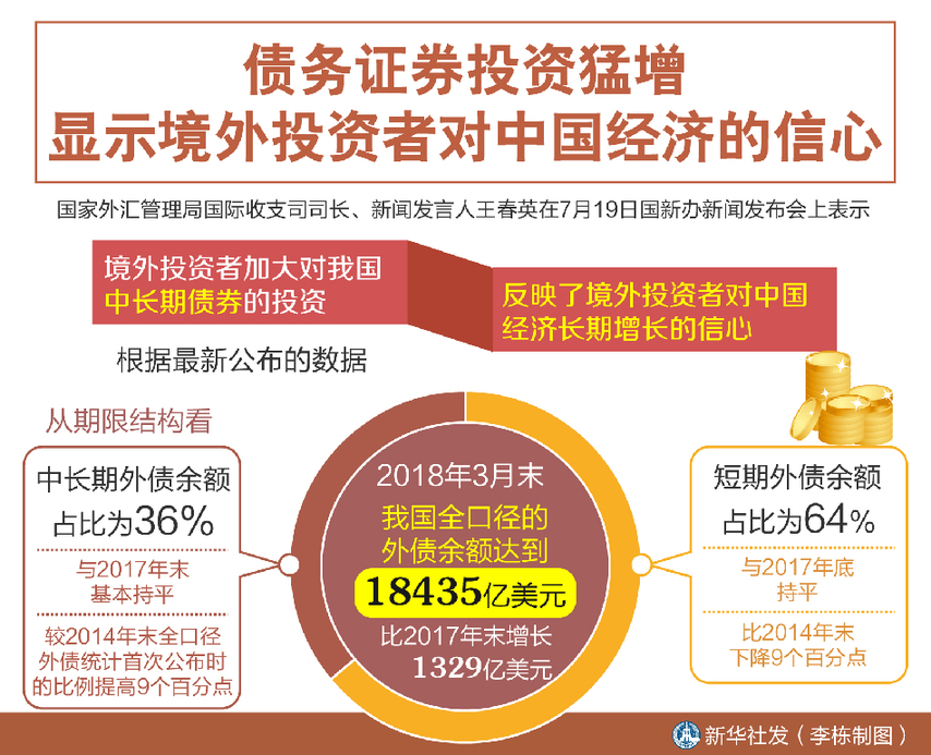 新華社北京7月19日電(記者劉開雄)“我們觀察新增長的外債中,有八成是債務(wù)證券。”國家外匯管理局國際收支司司長、新聞發(fā)言人王春英在19日國新辦新聞發(fā)布會上表示,境外投資者加大對我國中長期債券的投資,反映了境外投資者對中國經(jīng)濟(jì)長期增長的信心。