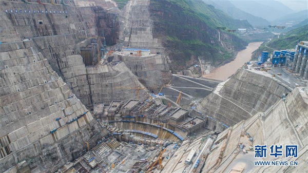 這是白鶴灘水電站建設(shè)工地(7月11日無人機拍攝)。 新華社記者 胡超 攝