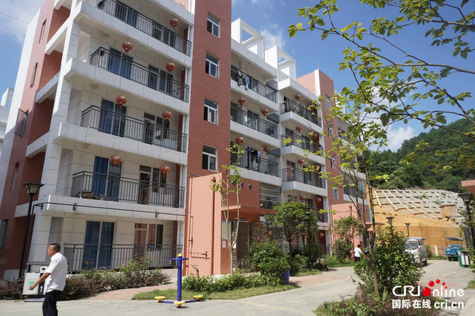 “電視、洗衣機(jī)、冰箱,甚至那些鍋碗瓢盆都是政府給置備的,我們直接拎著包進(jìn)來就能夠入住生活了。”貴州省都勻市金恒星移民安置點移民莫躍武介紹起自己剛?cè)胱∏榫皶r一臉幸福。