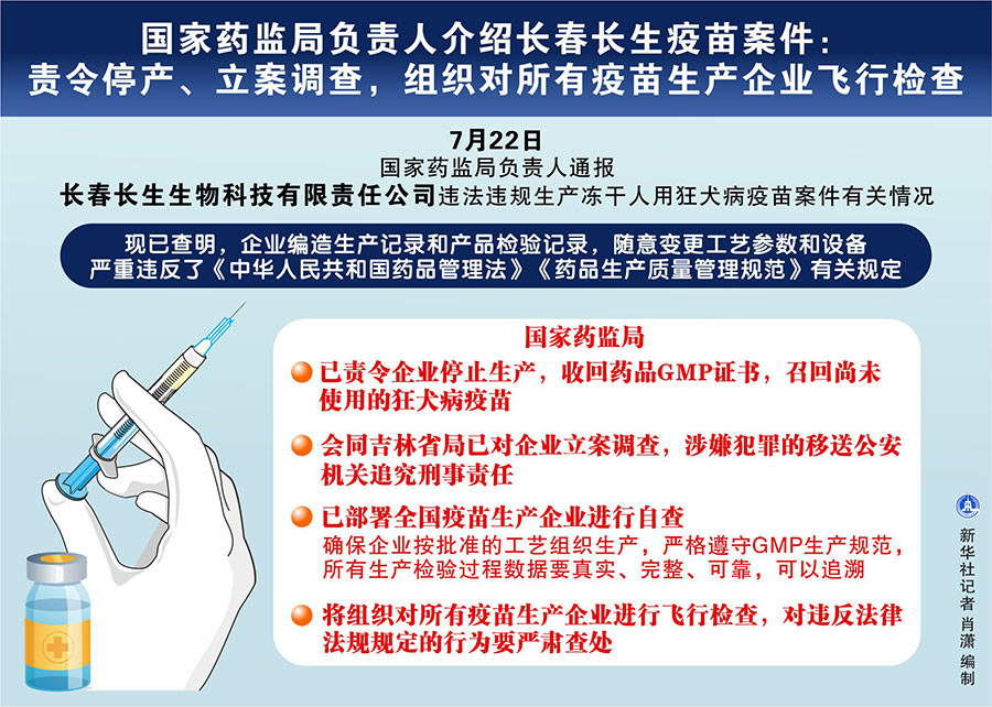 國家藥監局負責人介紹長春長生疫苗案件:責令停產、立案調查,組織對所有疫苗生產企業飛行檢查-新華網